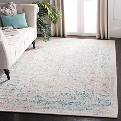 SAFAVIEH Glam Rug for Living Room, Dining Bedroom Passion Collection, Short Pile, in Turquoise and Ivory, 122 X 170 cm