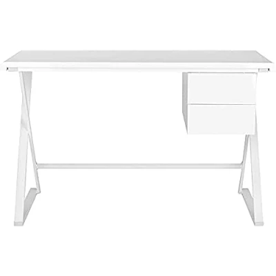 Safavieh Lacquer Desk. Perfect for the Living Room, Dining Room, Family Room, Den, Library or Study/Office. Color: White & Chrome ; Product Dimensions: 119 X 54 X 74.93 cm Wood Content: Medium-density fibreboard Assembly Required: Yes ; Country of Origin: China Dust regularly with a soft, dry cloth. Never use oiled or treated cloths on lacquered finishes. Some finishes can be wiped with a damp (not wet) cloth, followed at once by rubbing with a dry cloth to remove fingerprints and smudges. For persistent spots, gently clean with a soft cloth and a solution of water and mild soap, make sure to wipe dry. Use adhesive felt pads, coasters and placemats to protect your furniture.