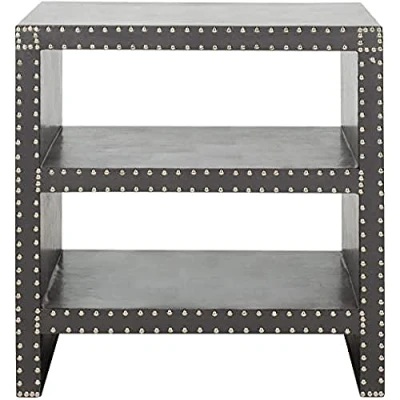Safavieh 2-Shelf Side Table. Perfect for the Living Room, Dining Room, Family Room, Den, Library or Study/Office. Color: Grey ; Product Dimensions: 39 X 59 X 59.94 cm Wood Content: Medium-density fibreboard ; Upholstery Content: Faux PU Pebbled Leather Assembly Required: No ; Country of Origin: China Blot up spills immediately, use coasters under beverages. Use trivets or mats under hot dishes or cookware. Clean with warm water and dry surface immediately after cleaning with a soft, clean absorbent cloth. Do not use abrasive cleaners that may contain acid such as bathroom cleaners, grout cleaner or tile cleaners. Maintain with regular dusting.