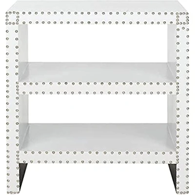 Safavieh 2-Shelf Side Table. Perfect for the Living Room, Dining Room, Family Room, Den, Library or Study/Office. Color: White Crocodile ; Product Dimensions: 39 X 59 X 59.94 cm Wood Content: Medium-density fibreboard ; Upholstery Content: Faux PU Smooth Leather Assembly Required: No ; Country of Origin: China Blot up spills immediately, use coasters under beverages. Use trivets or mats under hot dishes or cookware. Clean with warm water and dry surface immediately after cleaning with a soft, clean absorbent cloth. Do not use abrasive cleaners that may contain acid such as bathroom cleaners, grout cleaner or tile cleaners. Maintain with regular dusting.