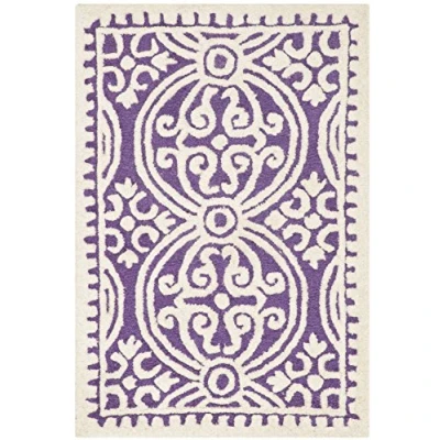 Dimensions: 60 X 91 cm Colour: Purple / Ivory Main Material: Wool Construction: Hand Tufted - Loop & Cut Pile Country of Origin: India