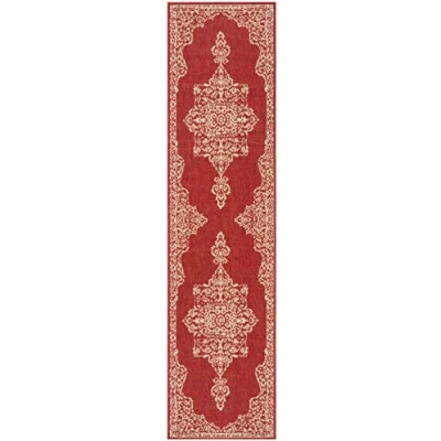 SAFAVIEH Medallion Rug for Indoor & Outdoor Beachhouse Collection, Short Pile, in Red and Creme color, 61 X 244 cm