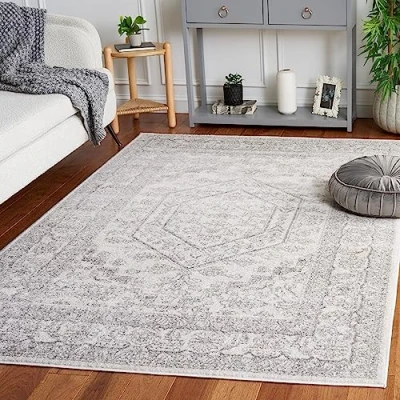 Safavieh Medallion Rug for Living Room, Dining Bedroom Adirondack Collection, Short Pile, in Ivory and Silver, 183 X 274 cm