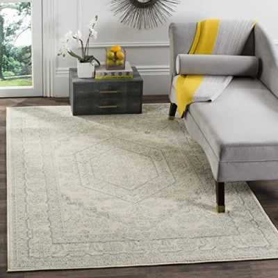 Safavieh Medallion Rug for Living Room, Dining Bedroom Adirondack Collection, Short Pile, in Ivory and Slate, 122 X 183 cm