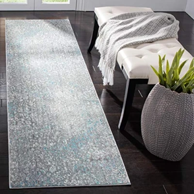 SAFAVIEH Metro Mod Rug for Living Room, Dining Bedroom Mystique Collection, Short Pile, in Grey and Light Blue, 69 X 244 cm