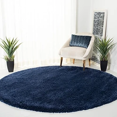 Safavieh Milan Shag Collection SG180 7070 Navy Round Area Rug (3' Diameter)