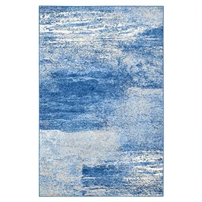 SAFAVIEH Modern Abstract Rug for Living Room, Dining Bedroom Adirondack Collection, Short Pile, in Silver and Blue, 91 X 152 cm