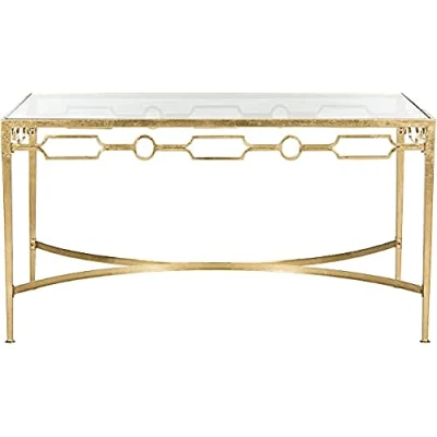 SAFAVIEH Modern Accent Table with Iron Legs, in Gold and Clear, 45 X 65.27