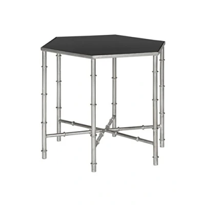 Safavieh Modern Accent Table. Perfect for the Living Room, Dining Room, Family Room, Den, Library or Study/Office. Color: Silver With Black Glass Top ; Product Dimensions: 50 X 43 X 43.18 cm Finish: Durable Iron With Silver Leaf Lacquer Coating Assembly Required: No ; Country of Origin: China Blot spills immediately. Maintain with regular dusting and wipe with mild soap and water, dry thoroughly and do not use brass cleaners or abrasive household chemicals to avoid damage to the finish. For a natural streak-free shine, use a soft lint-free cloth and a small amount of 1:1 ratio white vinegar and water to clean. Non-streaking glass cleaners may also be used.