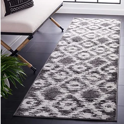 TRENDY STYLE: Modern Diamond Trellis rug design from the Safavieh Adirondack Collection woven in Turkey beautifully enhances any room of the home, from the living room, dining room, bedroom, home office, or entryway. Available in many colors and sizes. HIGH QUALITY & DURABLE DESIGN: Woven of Polypropylene this machine made area rug has a plush & comfortable 1.1 cm low pile and is soft underfoot. STAIN RESISTANT & FAMILY-FRIENDLY: Expertly woven from enhanced soft synthetic durable fibers that are stain resistant and non-shedding, the rug doesn't trap dirt or debris making it pet-friendly and easy to clean. Perfect for high traffic areas. EASY CARE & MAINTENANCE: Vacuum regularly and gently blot and clean stains immediately with a mild detergent or carpet cleaner, then rinse thoroughly and dry. Professional cleaning recommended for tough stains and dirt. THE BRAND: Safavieh has been a trusted brand and global leader in home & living for over 100 Years. Experts in making quality, durable, trendy designs, the brand mixes materials, colors and styles to create a collection of rugs, furniture and lights