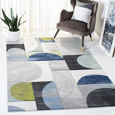 Trendy style: modern graphic rug design from the safavieh Hollywood collection woven in turkey beautifully enhances any room of the home, from the living room, dining room, bedroom, home office, or entryway. Available in many colours and sizes High quality and durable design: woven of polypropylene this machine made area rug has a plush and comfortable 1.3 cm low pile and is soft underfoot Stain resistant and family-friendly: expertly woven from enhanced soft synthetic durable fibres that are stain resistant and non-shedding, the rug doesn't trap dirt or debris making it pet-friendly and easy to clean. Perfect for high traffic areas Easy care and maintenance: vacuum regularly and gently blot and clean stains immediately with a mild detergent or carpet cleaner, then rinse thoroughly and dry. Professional cleaning recommended for tough stains and dirt The brand: safavieh has been a trusted brand and global leader in home and living for over 100 years. Experts in making quality, durable, trendy designs, the brand mixes materials, colours and styles to create a collection of rugs, furniture and lights