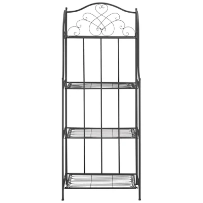 CHIC DESIGNER DETAILS: Add a chic touch of style to the patio, backyard, porch, sunroom, deck, or terrace with this 4-tier baker's rack DURABLE MATERIALS & CONSTRUCTION: Crafted from sturdy wrought iron with an antique dark green finish NO ASSEMBLY REQUIRED: Arrives fully assembled for ultimate convenience and instant enjoyment in your home TRUSTED BRAND: SAFAVIEH has been a trusted brand and leader in home furnishings for over 100 years, using their specialty and expertise in crafting the trendiest and optimal qualitydesigns and selection of colors; begin your outdoor search with SAFAVIEH and explore thousands of products today