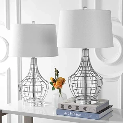 SAFAVIEH Modern Metal Table Lamps Set of 2, in Silver and White