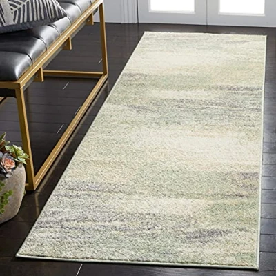 Safavieh Modern Rug for Living Room, Dining Bedroom, Adirondack Collection, Short Pile, in Ivory and Sage, 76 x 244 cm