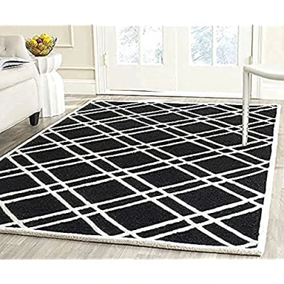 TRENDY STYLE: Modern rug design from the Safavieh Cambridge Collection hand tufted in India beautifully enhances any room of the home, from the living room, dining room, bedroom, home office, or entryway. Available in many colors and sizes. HIGH QUALITY & DURABLE DESIGN: Woven of 100% Wool Pile this hand tufted area rug has a plush & comfortable 1.2 cm medium pile and is soft underfoot. STAIN RESISTANT & FAMILY-FRIENDLY: Beautifully hand tufted from artisans of the highest quality, soft and dense wool, this carpet is comfortable underfoot. Given the nature of the fibers, this rug is less susceptible to stains. EASY CARE & MAINTENANCE: Vacuum regularly and gently blot and clean stains immediately with a mild detergent or carpet cleaner, then rinse thoroughly and dry. Professional cleaning recommended for tough stains and dirt. THE BRAND: Safavieh has been a trusted brand and global leader in home & living for over 100 Years. Experts in making quality, durable, trendy designs, the brand mixes materials, colors and styles to create a collection of rugs, furniture and lights Construction Type: Hand Tufted; Materials 100% Wool Size: 152 X 243 cm; Colour: Black / Ivory Vacuum regularly to prevent dust and crumbs from settling into the roots of the fibres. Avoid direct and continuous exposure to sunlight. Use rug protectors under the legs of heavy furniture to avoid flattening piles. Do not pull loose ends; clip them with scissors to remove. Turn carpet occasionally to equalize wear. Remove spills immediately. Professional cleaning is recommended.