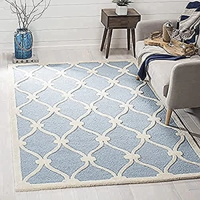 TRENDY STYLE: Modern rug design from the Safavieh Cambridge Collection hand tufted in India beautifully enhances any room of the home, from the living room, dining room, bedroom, home office, or entryway. Available in many colors and sizes. HIGH QUALITY & DURABLE DESIGN: Woven of 100% Wool Pile this hand tufted area rug has a plush & comfortable 1.2 cm medium pile and is soft underfoot. STAIN RESISTANT & FAMILY-FRIENDLY: Beautifully hand tufted from artisans of the highest quality, soft and dense wool, this carpet is comfortable underfoot. Given the nature of the fibers, this rug is less susceptible to stains. EASY CARE & MAINTENANCE: Vacuum regularly and gently blot and clean stains immediately with a mild detergent or carpet cleaner, then rinse thoroughly and dry. Professional cleaning recommended for tough stains and dirt. THE BRAND: Safavieh has been a trusted brand and global leader in home & living for over 100 Years. Experts in making quality, durable, trendy designs, the brand mixes materials, colors and styles to create a collection of rugs, furniture and lights Construction Type: Hand Tufted; Materials 100% Wool Size: 182 X 274 cm; Colour: Blue / Ivory Vacuum regularly to prevent dust and crumbs from settling into the roots of the fibres. Avoid direct and continuous exposure to sunlight. Use rug protectors under the legs of heavy furniture to avoid flattening piles. Do not pull loose ends; clip them with scissors to remove. Turn carpet occasionally to equalize wear. Remove spills immediately. Professional cleaning is recommended.