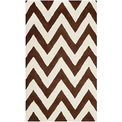 TRENDY STYLE: Modern rug design from the Safavieh Cambridge Collection hand tufted in India beautifully enhances any room of the home, from the living room, dining room, bedroom, home office, or entryway. Available in many colors and sizes. HIGH QUALITY & DURABLE DESIGN: Woven of 100% Wool Pile this hand tufted area rug has a plush & comfortable 1.2 cm medium pile and is soft underfoot. STAIN RESISTANT & FAMILY-FRIENDLY: Beautifully hand tufted from artisans of the highest quality, soft and dense wool, this carpet is comfortable underfoot. Given the nature of the fibers, this rug is less susceptible to stains. EASY CARE & MAINTENANCE: Vacuum regularly and gently blot and clean stains immediately with a mild detergent or carpet cleaner, then rinse thoroughly and dry. Professional cleaning recommended for tough stains and dirt. THE BRAND: Safavieh has been a trusted brand and global leader in home & living for over 100 Years. Experts in making quality, durable, trendy designs, the brand mixes materials, colors and styles to create a collection of rugs, furniture and lights Construction Type: Hand Tufted; Materials 100% Wool Size: 91 X 152 cm; Colour: Dark Brown / Ivory Vacuum regularly to prevent dust and crumbs from settling into the roots of the fibres. Avoid direct and continuous exposure to sunlight. Use rug protectors under the legs of heavy furniture to avoid flattening piles. Do not pull loose ends; clip them with scissors to remove. Turn carpet occasionally to equalize wear. Remove spills immediately. Professional cleaning is recommended.