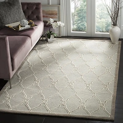 TRENDY STYLE: Modern rug design from the Safavieh Cambridge Collection hand tufted in India beautifully enhances any room of the home, from the living room, dining room, bedroom, home office, or entryway. Available in many colors and sizes. HIGH QUALITY & DURABLE DESIGN: Woven of 100% Wool Pile this hand tufted area rug has a plush & comfortable 1.2 cm medium pile and is soft underfoot. STAIN RESISTANT & FAMILY-FRIENDLY: Beautifully hand tufted from artisans of the highest quality, soft and dense wool, this carpet is comfortable underfoot. Given the nature of the fibers, this rug is less susceptible to stains. EASY CARE & MAINTENANCE: Vacuum regularly and gently blot and clean stains immediately with a mild detergent or carpet cleaner, then rinse thoroughly and dry. Professional cleaning recommended for tough stains and dirt. THE BRAND: Safavieh has been a trusted brand and global leader in home & living for over 100 Years. Experts in making quality, durable, trendy designs, the brand mixes materials, colors and styles to create a collection of rugs, furniture and lights Construction Type: Hand Tufted; Materials 100% Wool Size: 121 X 182 cm; Colour: Light Grey / Ivory Vacuum regularly to prevent dust and crumbs from settling into the roots of the fibres. Avoid direct and continuous exposure to sunlight. Use rug protectors under the legs of heavy furniture to avoid flattening piles. Do not pull loose ends; clip them with scissors to remove. Turn carpet occasionally to equalize wear. Remove spills immediately. Professional cleaning is recommended.
