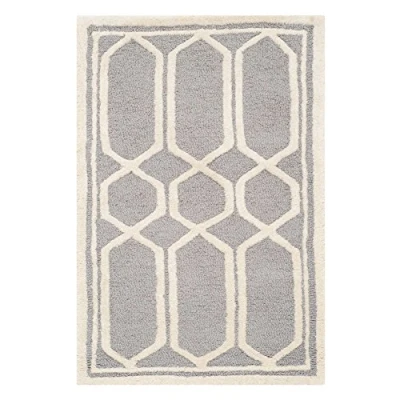TRENDY STYLE: Modern rug design from the Safavieh Cambridge Collection hand tufted in India beautifully enhances any room of the home, from the living room, dining room, bedroom, home office, or entryway. Available in many colors and sizes. HIGH QUALITY & DURABLE DESIGN: Woven of 100% Wool Pile this hand tufted area rug has a plush & comfortable 1.2 cm medium pile and is soft underfoot. STAIN RESISTANT & FAMILY-FRIENDLY: Beautifully hand tufted from artisans of the highest quality, soft and dense wool, this carpet is comfortable underfoot. Given the nature of the fibers, this rug is less susceptible to stains. EASY CARE & MAINTENANCE: Vacuum regularly and gently blot and clean stains immediately with a mild detergent or carpet cleaner, then rinse thoroughly and dry. Professional cleaning recommended for tough stains and dirt. THE BRAND: Safavieh has been a trusted brand and global leader in home & living for over 100 Years. Experts in making quality, durable, trendy designs, the brand mixes materials, colors and styles to create a collection of rugs, furniture and lights Construction Type: Hand Tufted; Materials 100% Wool Size: 121 X 182 cm; Colour: Silver / Ivory Vacuum regularly to prevent dust and crumbs from settling into the roots of the fibres. Avoid direct and continuous exposure to sunlight. Use rug protectors under the legs of heavy furniture to avoid flattening piles. Do not pull loose ends; clip them with scissors to remove. Turn carpet occasionally to equalize wear. Remove spills immediately. Professional cleaning is recommended.