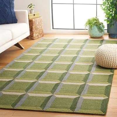 Safavieh Modern Rug for Living Room, Dining Bedroom, Genre Collection, Short Pile, in Green and Beige, 160 x 230 cm
