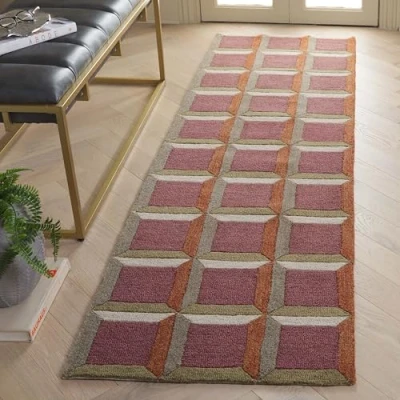 Safavieh Modern Rug for Living Room, Dining Bedroom, Genre Collection, Short Pile, in Red and Beige, 62 x 240 cm