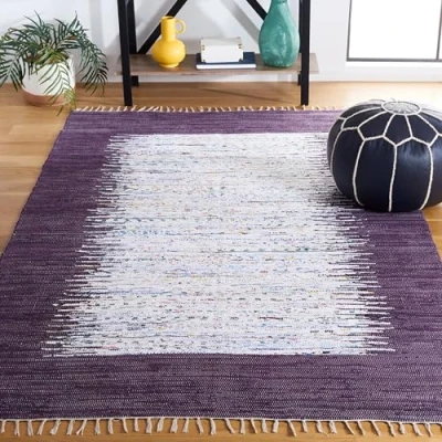 TRENDY STYLE: Modern rug design from the Safavieh Montauk Collection flatweave in India beautifully enhances any room of the home, from the living room, dining room, bedroom, home office, or entryway. Available in many colors and sizes. HIGH QUALITY & DURABLE DESIGN: Woven of Cotton Pile this hand made area rug has a plush & comfortable 0.6 cm low pile and is soft underfoot. STAIN RESISTANT & FAMILY-FRIENDLY: This beautiful flatweave is hand made by artisans of cotton. Given the nature of the fibers, this rug is easy, casual, affordable update to any room in your home. EASY CARE & MAINTENANCE: Vacuum regularly and gently blot and clean stains immediately with a mild detergent or carpet cleaner, then rinse thoroughly and dry. Professional cleaning recommended for tough stains and dirt. THE BRAND: Safavieh has been a trusted brand and global leader in home & living for over 100 Years. Experts in making quality, durable, trendy designs, the brand mixes materials, colors and styles to create a collection of rugs, furniture and lights Construction Type: Hand Woven; Materials 100% Cotton Size: 152 X 243 cm; Colour: Ivory / Purple Vacuum regularly to prevent dust and crumbs from settling into the roots of the fibres. Avoid direct and continuous exposure to sunlight. Use rug protectors under the legs of heavy furniture to avoid flattening piles. Do not pull loose ends; clip them with scissors to remove. Turn carpet occasionally to equalize wear. Remove spills immediately. Professional cleaning is recommended.