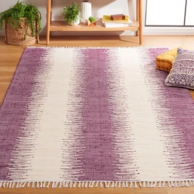 TRENDY STYLE: Modern rug design from the Safavieh Montauk Collection flatweave in India beautifully enhances any room of the home, from the living room, dining room, bedroom, home office, or entryway. Available in many colors and sizes. HIGH QUALITY & DURABLE DESIGN: Woven of Cotton Pile this hand made area rug has a plush & comfortable 0.6 cm low pile and is soft underfoot. STAIN RESISTANT & FAMILY-FRIENDLY: This beautiful flatweave is hand made by artisans of cotton. Given the nature of the fibers, this rug is easy, casual, affordable update to any room in your home. EASY CARE & MAINTENANCE: Vacuum regularly and gently blot and clean stains immediately with a mild detergent or carpet cleaner, then rinse thoroughly and dry. Professional cleaning recommended for tough stains and dirt. THE BRAND: Safavieh has been a trusted brand and global leader in home & living for over 100 Years. Experts in making quality, durable, trendy designs, the brand mixes materials, colors and styles to create a collection of rugs, furniture and lights Construction Type: Hand Woven; Materials 100% Cotton Size: 121 X 182 cm; Colour: Purple Vacuum regularly to prevent dust and crumbs from settling into the roots of the fibres. Avoid direct and continuous exposure to sunlight. Use rug protectors under the legs of heavy furniture to avoid flattening piles. Do not pull loose ends; clip them with scissors to remove. Turn carpet occasionally to equalize wear. Remove spills immediately. Professional cleaning is recommended.
