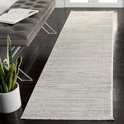 TRENDY STYLE: Modern Stripe rug design from the Safavieh Whisper Collection woven in Turkey beautifully enhances any room of the home, from the living room, dining room, bedroom, home office, or entryway; available in many colors and sizes OPTIMAL QUALITY & DURABLE DESIGN: Woven of 48% Polypropylene / 40 % Cotton / 12% Polyester, this machine made area rug has a plush & comfortable 1 cm low pile and is soft underfoot TRENDY STYLE: Design beautifully enhances any room of the home, from the living room, dining room, bedroom, entryway, nursery, kid's room, playroom, dorm room, study, or home office EASY CARE & MAINTENANCE: Stress-free cleaning includes regular vacuuming (without a beater bar) and gently blotting out minor stains with a mild detergent or carpet cleaner; professional cleaning recommended for tough stains and dirt TRUSTED BRAND: SAFAVIEH has been a trusted brand and leader in home furnishings for over 100 years, using their specialty and expertise in crafting the trendiest and optimal qualitydesigns and selection of colors; begin your rug search with SAFAVIEH and explore over 100,000 products today