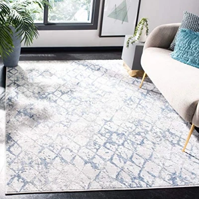 TRENDY STYLE: Modern Trellis Distressed rug design from the Safavieh Amelia Collection woven in Turkey beautifully enhances any room of the home, from the living room, dining room, bedroom, home office, or entryway. Available in many colors and sizes. HIGH QUALITY & DURABLE DESIGN: Woven of 75% Polypropylene / 25% Shrink Polyester this machine made area rug has a plush & comfortable 1.1 cm low pile and is soft underfoot. STAIN RESISTANT & FAMILY-FRIENDLY: Expertly woven from enhanced soft synthetic durable fibers that are stain resistant and non-shedding, the rug doesn't trap dirt or debris making it pet-friendly and easy to clean. Perfect for high traffic areas. EASY CARE & MAINTENANCE: Vacuum regularly and gently blot and clean stains immediately with a mild detergent or carpet cleaner, then rinse thoroughly and dry. Professional cleaning recommended for tough stains and dirt. THE BRAND: Safavieh has been a trusted brand and global leader in home & living for over 100 Years. Experts in making quality, durable, trendy designs, the brand mixes materials, colors and styles to create a collection of rugs, furniture and lights