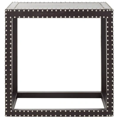 Safavieh Geometric End Table. Perfect for the Living Room, Dining Room, Family Room, Den, Library or Study/Office. Color: Charcoal ; Product Dimensions: 39 X 59 X 59.94 cm Wood Content: Medium-density fibreboard ; Upholstery Content: Faux PU Smooth Leather Assembly Required: No ; Country of Origin: China Blot up spills immediately, use coasters under beverages. Use trivets or mats under hot dishes or cookware. Clean with warm water and dry surface immediately after cleaning with a soft, clean absorbent cloth. Do not use abrasive cleaners that may contain acid such as bathroom cleaners, grout cleaner or tile cleaners. Maintain with regular dusting.