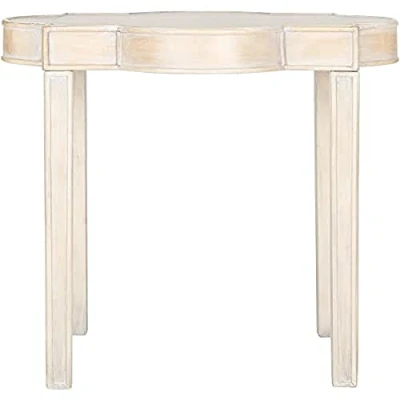 Safavieh Quatrefoil End Table. Perfect for the Living Room, Dining Room, Family Room, Den, Library or Study/Office. Color: Grey Wash ; Product Dimensions: 53 X 68 X 60.96 cm Wood Content: Fir Wood & Medium-density fibreboard Assembly Required: Yes ; Country of Origin: China Wood is a natural material with variations of color shade, configuration, streaks, and grain structure. Each individual piece of Safavieh furniture has characteristic markings that will differ from photo and showroom samples. Regular attention and maintenance of fine furniture can ensure its beauty for years to come. Always use felt pads under all articles to prevent discoloration or softening of any lacquer surfaces such as hardwood floors or tiles. Plastic and rubber bases on items can discolor wood. Frequently dust with a clean, lint-free cloth or feather duster. Avoid the use of chemicals and household cleaners as they may damage the finish.