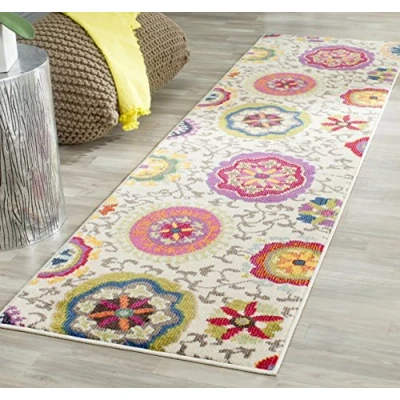 Safavieh Monaco Collection Boho Rug for Living Room, Dining Bedroom, Short Pile, Ivory and Multi, 66 x 305 cm