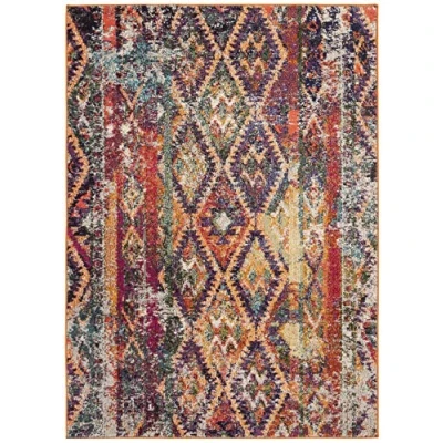 Safavieh Monaco Collection Boho Rug for Living Room, Dining Bedroom, Short Pile, Purple and Orange, 90 x 150 cm
