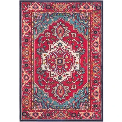 Safavieh Monaco Collection Boho Rug for Living Room Dining Bedroom Short Pile Red and Turquoise 24 x 36 Inch