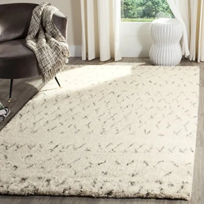 SAFAVIEH Moroccan Rug for Living Room, Dining Bedroom Casablanca Collection, Short Pile, in Ivory and Grey, 122 X 183 cm