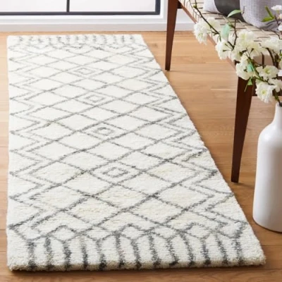 SAFAVIEH Moroccan Rug for Living Room, Dining Bedroom Casablanca Collection, Short Pile, in Ivory and Grey, 69 X 244 cm