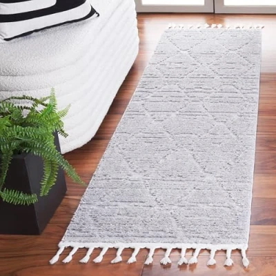 Safavieh Moroccan Rug for Living Room, Dining Bedroom Marrakech Collection, Short Pile, in Grey, 66 X 244 cm