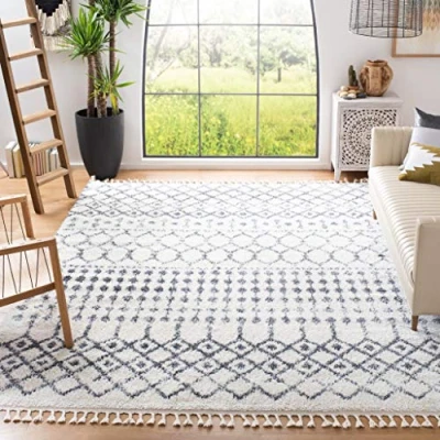 TRENDY STYLE: Moroccan Shaggy rug design from the Safavieh Berber Fringe Shag Collection woven in Turkey beautifully enhances any room of the home, from the living room, dining room, bedroom, home office, or entryway. Available in many colors and sizes. HIGH QUALITY & DURABLE DESIGN: Woven of 80% Polypropylene / 20% Polyester this machine made area rug has a plush & comfortable 3 cm low pile and is soft underfoot. STAIN RESISTANT & FAMILY-FRIENDLY: Expertly woven from enhanced soft synthetic durable fibers that are stain resistant and non-shedding, the rug doesn't trap dirt or debris making it pet-friendly and easy to clean. Perfect for high traffic areas. EASY CARE & MAINTENANCE: Vacuum regularly and gently blot and clean stains immediately with a mild detergent or carpet cleaner, then rinse thoroughly and dry. Professional cleaning recommended for tough stains and dirt. THE BRAND: Safavieh has been a trusted brand and global leader in home & living for over 100 Years. Experts in making quality, durable, trendy designs, the brand mixes materials, colors and styles to create a collection of rugs, furniture and lights