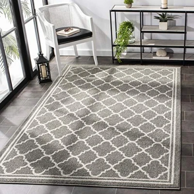 TRENDY STYLE: Moroccan Trellis rug design from the Safavieh Amherst Collection woven in Turkey enhances any outdoor space. This durable design can also be used for kitchen, playroom, nursery or any high traffic area. Available in many colors and sizes. HIGH QUALITY & DURABLE DESIGN: Woven of 67% Polypropylene / 18% Fibrillated Polypropylene / 8% Latex / 7% Poly-Cotton this machine made area rug has a plush & comfortable 0.95 cm low pile and is soft underfoot. STAIN RESISTANT & FAMILY-FRIENDLY: Expertly woven from enhanced soft synthetic durable fibers that are stain resistant and non-shedding, the rug doesn't trap dirt or debris making it pet-friendly and easy to clean. Perfect for high traffic areas. EASY CARE & MAINTENANCE: Outdoor rugs are made from fibers that are water and stain resistant and deter mildew to withstand natural weather elements. Rinse with a garden hose to remove excessive grime. Dry over a railing in the sun on both sides. THE BRAND: Safavieh has been a trusted brand and global leader in home & living for over 100 Years. Experts in making quality, durable, trendy designs, the brand mixes materials, colors and styles to create a collection of rugs, furniture and lights