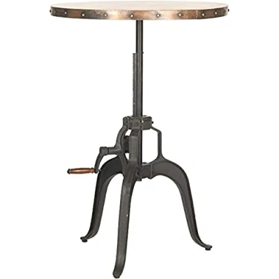 Safavieh Iron Adjustable Crank Table. Perfect for the Living Room, Dining Room, Family Room, Den, Library or Study/Office. Color: Black & Copper ; Product Dimensions: 76 X 76 X 78.74 cm Material: Blank Iron Base, Copper Table Top Assembly Required: Yes ; Country of Origin: India To maintain, use only mild soap and water with a non-abrasive clean cloth. Avoid the use of chemicals and household cleaners as they may damage the finish.