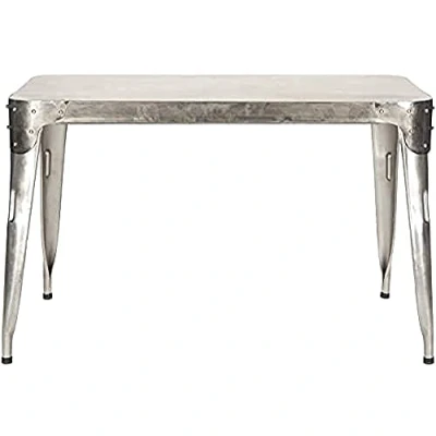 Safavieh Rivet Dining Table. Perfect for the Living Room, Dining Room, Family Room, Den, Library or Study/Office. Color: Antique Silver ; Product Dimensions: 121 X 71 X 76.2 cm Material: Iron Assembly Required: Yes ; Country of Origin: India To maintain, use only mild soap and water with a non-abrasive clean cloth. Avoid the use of chemicals and household cleaners as they may damage the finish.