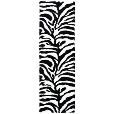 Safavieh Shag Rug for Living Room, Dining Bedroom, Florida Collection, High Pile, in Ivory and Black, 122 X 183 cm