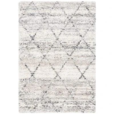 Safavieh Shag Rug for Living Room, Dining Bedroom, Fontana Collection, Short Pile, in Grey and Ivory, 69 x 122 cm