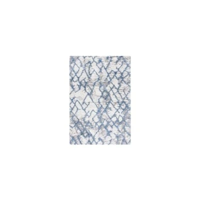 Safavieh Shag Rug for Living Room, Dining Bedroom Horizon Collection, Short Pile, in Ivory and Blue, 91 X 152 cm