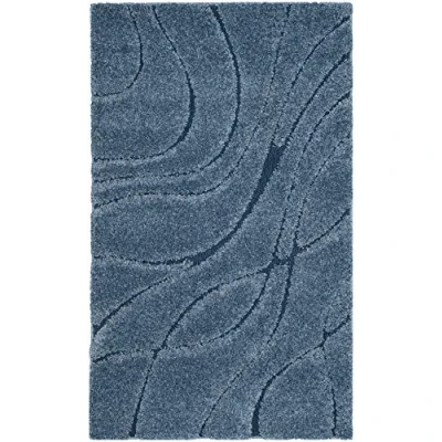 SAFAVIEH Shaggy Rug, Carpet Mat for Living Room, Dining Bedroom Florida Shag Collection, High Pile, in Light Blue and Blue, 99 X 160 cm