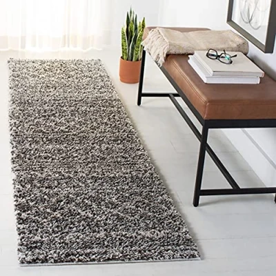 TRENDY STYLE: Shaggy rug design from the Safavieh Arizona Shag Collection woven in Turkey beautifully enhances any room of the home, from the living room, dining room, bedroom, home office, or entryway. Available in many colors and sizes. HIGH QUALITY & DURABLE DESIGN: Woven of Polypropylene this machine made area rug has a plush & comfortable 3 cm low pile and is soft underfoot. STAIN RESISTANT & FAMILY-FRIENDLY: Expertly woven from enhanced soft synthetic durable fibers that are stain resistant and non-shedding, the rug doesn't trap dirt or debris making it pet-friendly and easy to clean. Perfect for high traffic areas. EASY CARE & MAINTENANCE: Vacuum regularly and gently blot and clean stains immediately with a mild detergent or carpet cleaner, then rinse thoroughly and dry. Professional cleaning recommended for tough stains and dirt. THE BRAND: Safavieh has been a trusted brand and global leader in home & living for over 100 Years. Experts in making quality, durable, trendy designs, the brand mixes materials, colors and styles to create a collection of rugs, furniture and lights