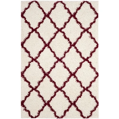 TRENDY STYLE: Shaggy rug design from the Safavieh Dallas Shag Collection woven in Turkey beautifully enhances any room of the home, from the living room, dining room, bedroom, home office, or entryway; available in many colors and sizes OPTIMAL QUALITY & DURABLE DESIGN: Woven of 100% Polyester Pile this machine made area rug has a plush & comfortable 4 cm high pile and is soft underfoot STAIN RESISTANT & FAMILY-FRIENDLY: Expertly woven from enhanced soft synthetic durable fibers that are stain resistant and non-shedding, the rug doesn't trap dirt or debris making it pet-friendly and easy to clean; optimal for high traffic areas EASY CARE & MAINTENANCE: Stress-free cleaning includes regular vacuuming (without a beater bar) and gently blotting out minor stains with a mild detergent or carpet cleaner; professional cleaning recommended for tough stains and dirt TRUSTED BRAND: SAFAVIEH has been a trusted brand and leader in home furnishings for over 100 years, using their specialty and expertise in crafting the trendiest and optimal qualitydesigns and selection of colors; begin your rug search with SAFAVIEH and explore over 100,000 products today