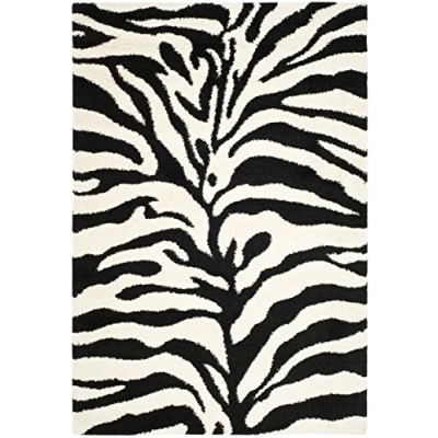 TRENDY STYLE: Shaggy rug design from the Safavieh Florida Shag Collection woven in Turkey beautifully enhances any room of the home, from the living room, dining room, bedroom, home office, or entryway. Available in many colors and sizes. HIGH QUALITY & DURABLE DESIGN: Woven of Polypropylene this machine made area rug has a plush & comfortable 3 cm high pile and is soft underfoot. STAIN RESISTANT & FAMILY-FRIENDLY: Expertly woven from enhanced soft synthetic durable fibers that are stain resistant and non-shedding, the rug doesn't trap dirt or debris making it pet-friendly and easy to clean. Perfect for high traffic areas. EASY CARE & MAINTENANCE: Vacuum regularly and gently blot and clean stains immediately with a mild detergent or carpet cleaner, then rinse thoroughly and dry. Professional cleaning recommended for tough stains and dirt. THE BRAND: Safavieh has been a trusted brand and global leader in home & living for over 100 Years. Experts in making quality, durable, trendy designs, the brand mixes materials, colors and styles to create a collection of rugs, furniture and lights Construction Type: Power Loomed; Material: 65% Polypropylene 23% Jute 5% Polyester Cotton 7% Latex Size: 68 X 121 cm; Colour: Ivory / Black Vacuum regularly to prevent dust and crumbs from settling into the roots of the fibres. Avoid direct and continuous exposure to sunlight. Use rug protectors under the legs of heavy furniture to avoid flattening piles. Do not pull loose ends; clip them with scissors to remove. Turn carpet occasionally to equalize wear. Remove spills immediately. Professional cleaning is recommended.