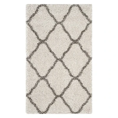 SAFAVIEH Shaggy Rug for Living Room, Dining Bedroom Hudson Shag Collection, High Pile, in Ivory and Grey, 91 X 152 cm