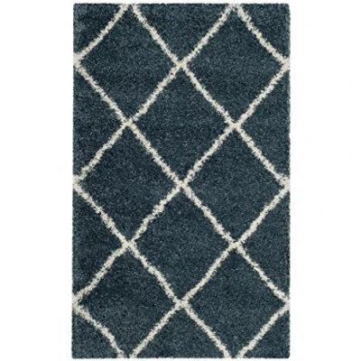 Safavieh Shaggy Rug for Living Room, Dining Bedroom Hudson Shag Collection, High Pile, in Slate Blue and Ivory, 91 X 152 cm